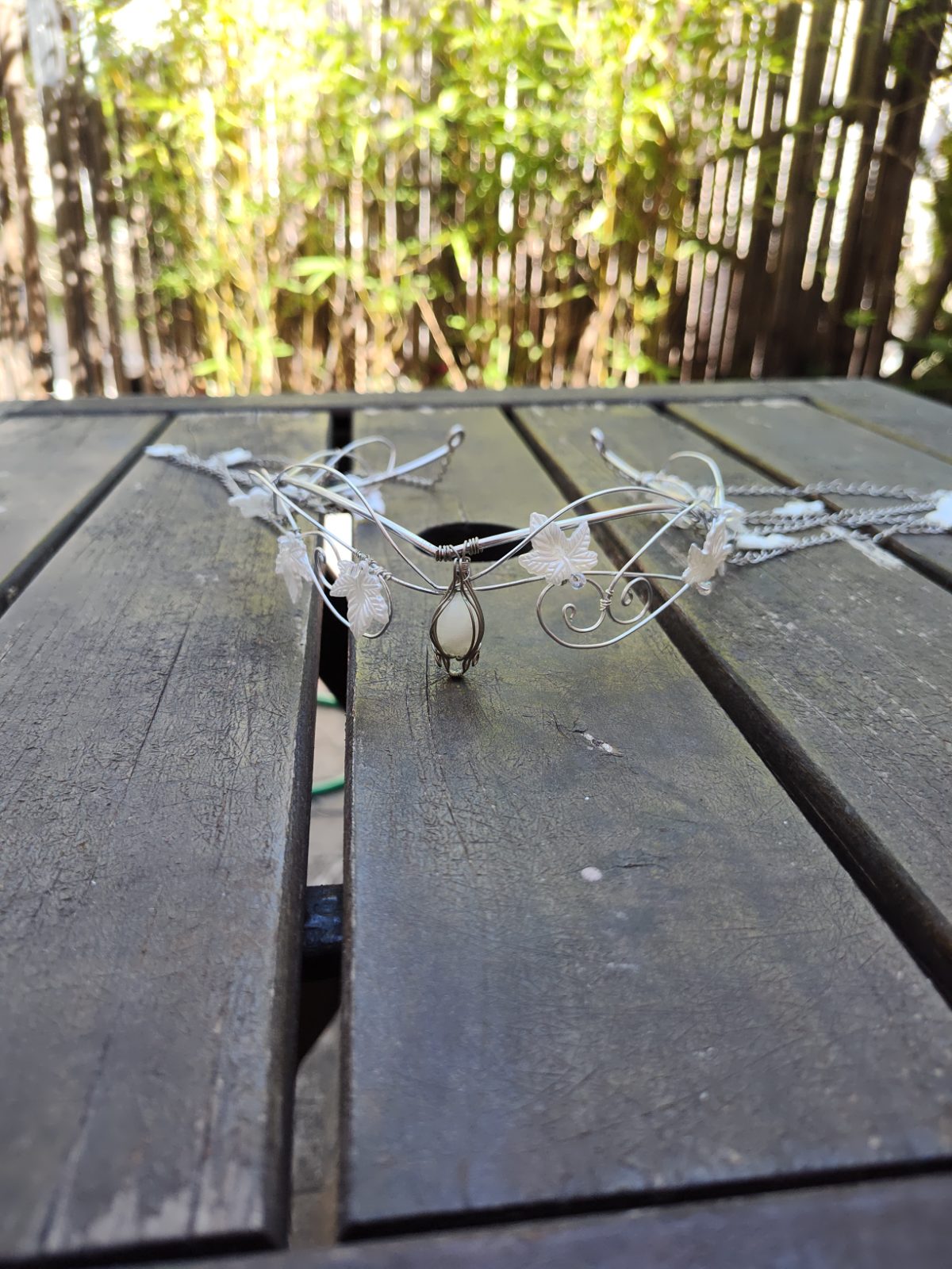 Tiara Elfica artesanal con piedra y cadenas