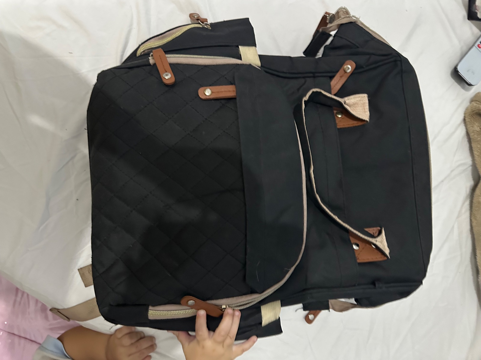 Tiene un millón de bolsillos para todo tipo de cosas, hasta para cargador portátil. Único detalle, el cierra principal roto