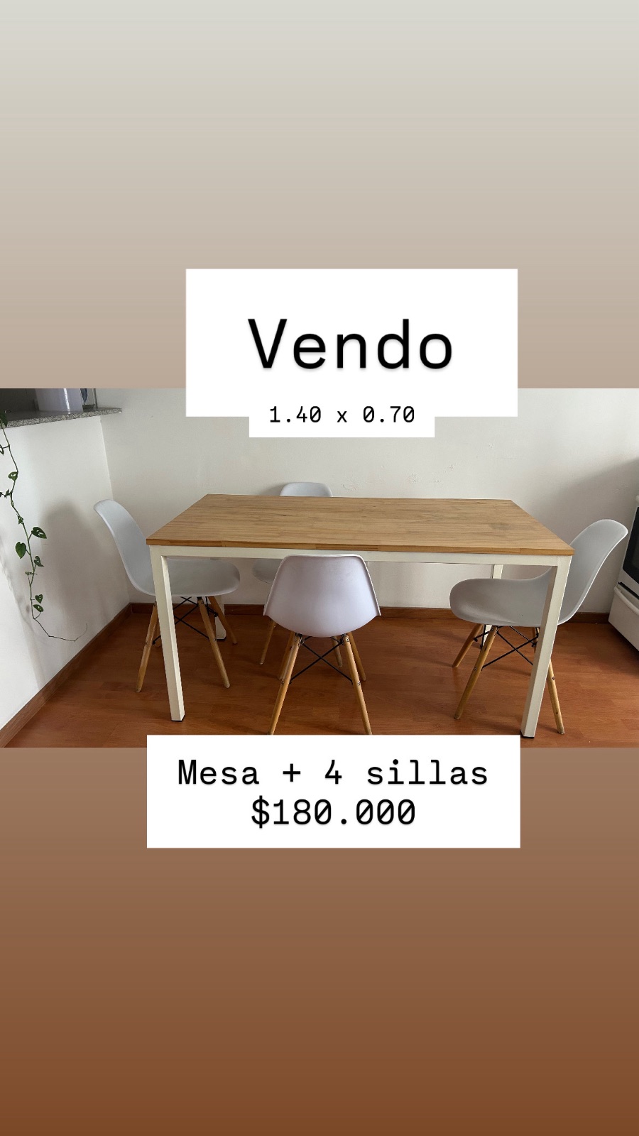 Mesa de madera con hierro + 4 sillas <div>Medida 1.40 x 0.70</div>