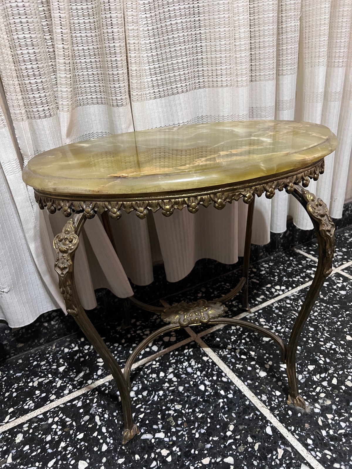 Mesita ratona de mármol y bronce de estilo