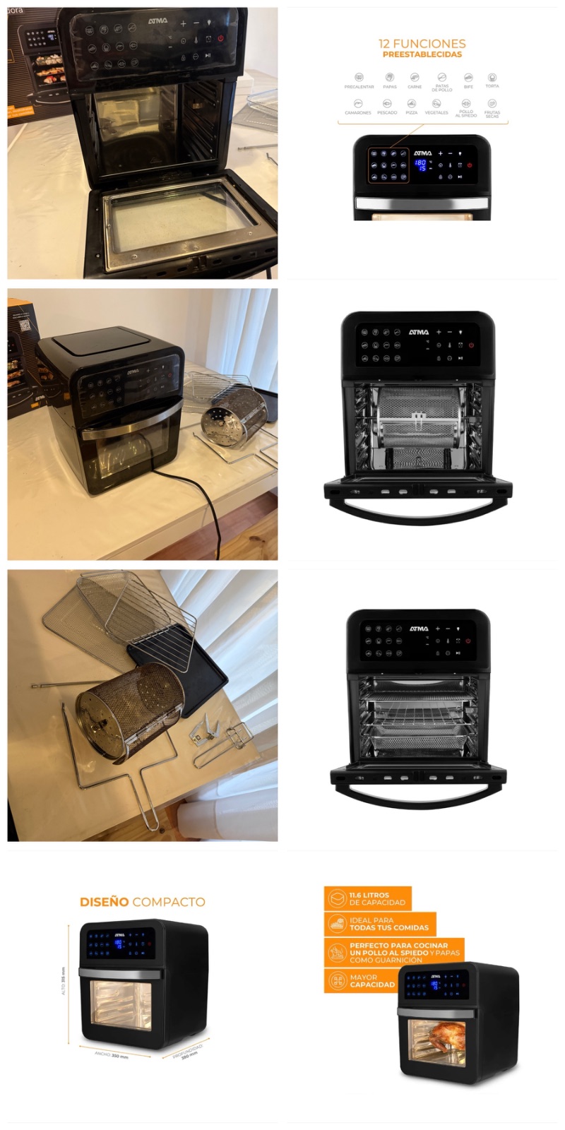 Freidora de Aire y Hornito Atma HFR582DP 11,6 Litros
